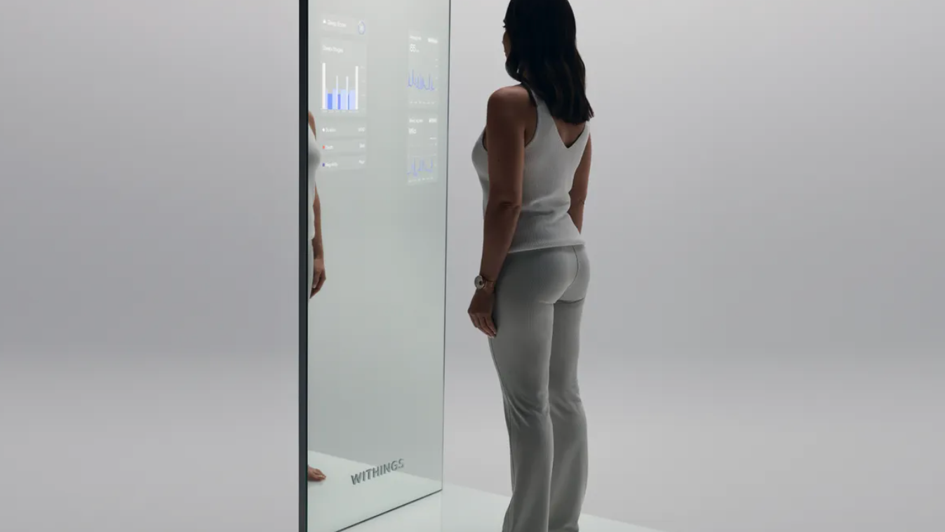 Earlier this year, wellness tech brand Withings introduced Omnia, an AI-powered, full-length smart mirror designed for comprehensive health assessments. Reminiscent of smart workout mirrors and scales, Omnia integrates data from various trackers to provide a holistic health overview. It performs a 360-degree body scan, measuring weight, heart, and lung health, and even taking an electrocardiogram. The integrated base reads additional metrics like blood pressure, heart rate, VO2 Max, and sleep quality. Utilizing an AI voice assistant, Omnia offers personalized recommendations, such as increasing steps or scheduling doctor appointments, and tracks metabolic health including muscle-to-fat ratio and visceral fat.